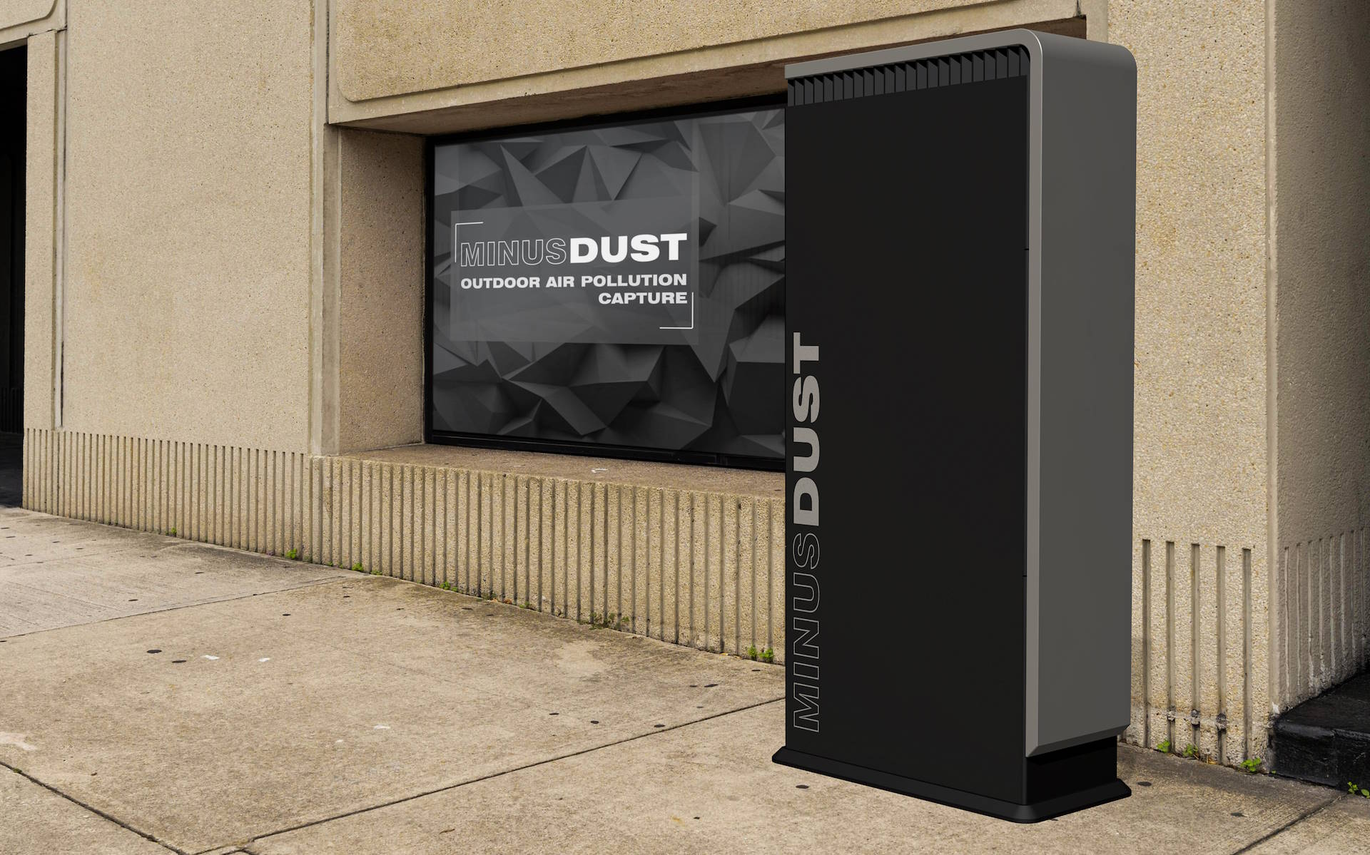 The challenge is to develop a cost effective and low maintenance Air Pollution Capture system that is scalable based on requirement and environment. MinusDUST Outdoor DACS is designed for areas with more concentrated levels of air pollution ‘Pollution Hotspots’, such as city center streets, parking garages and more. A system designed explicitly to be unobtrusive to look at.
