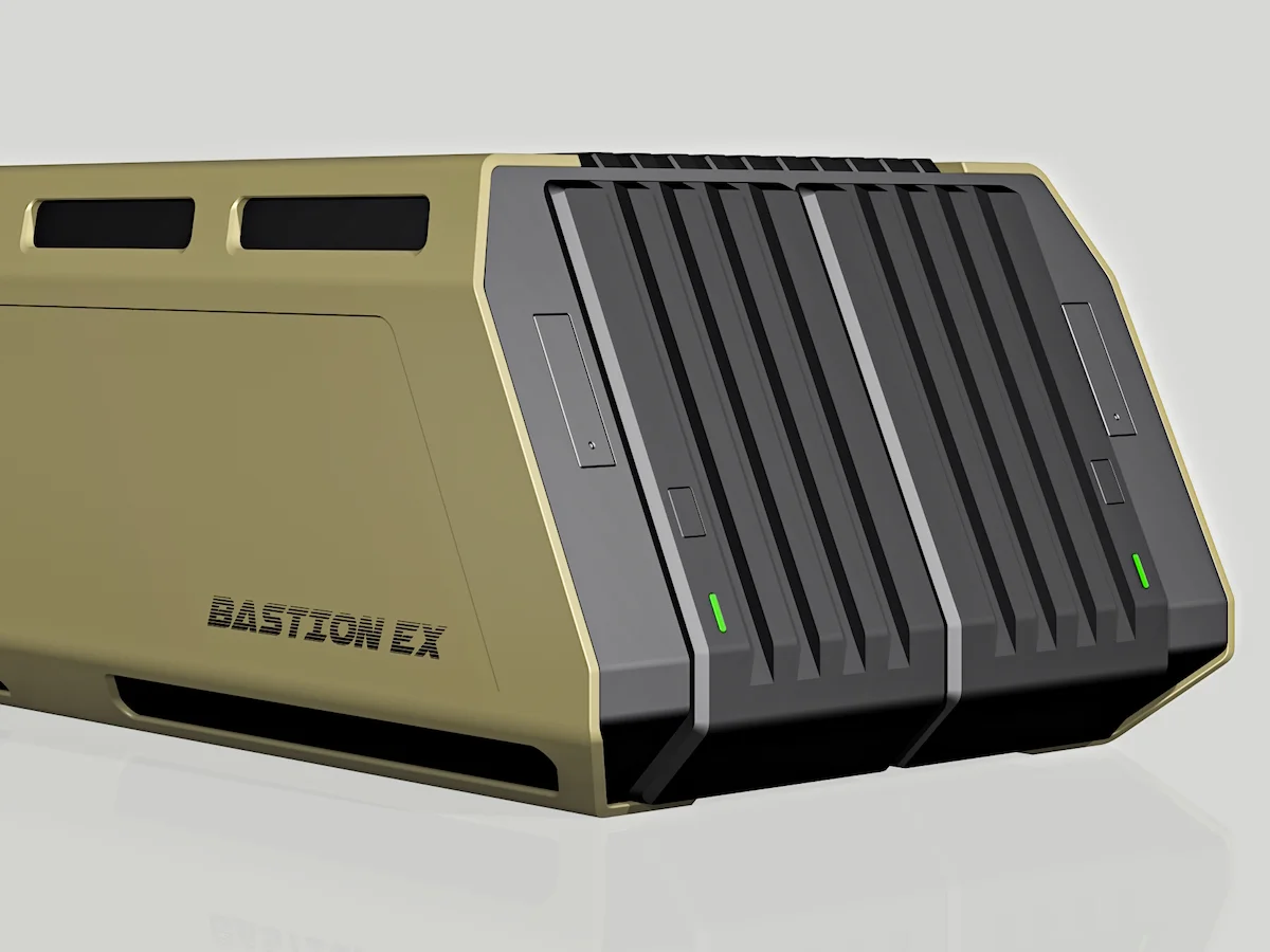 BASTION EX is a special-purpose, tactical-grade enclosure architecture designed and developed by VODD for a defence startup OEM. Conceived as a standardized external hardware shell, the platform establishes a common enclosure identity capable of supporting multiple mission-critical systems while meeting stringent operational and environmental requirements typical of defence applications.